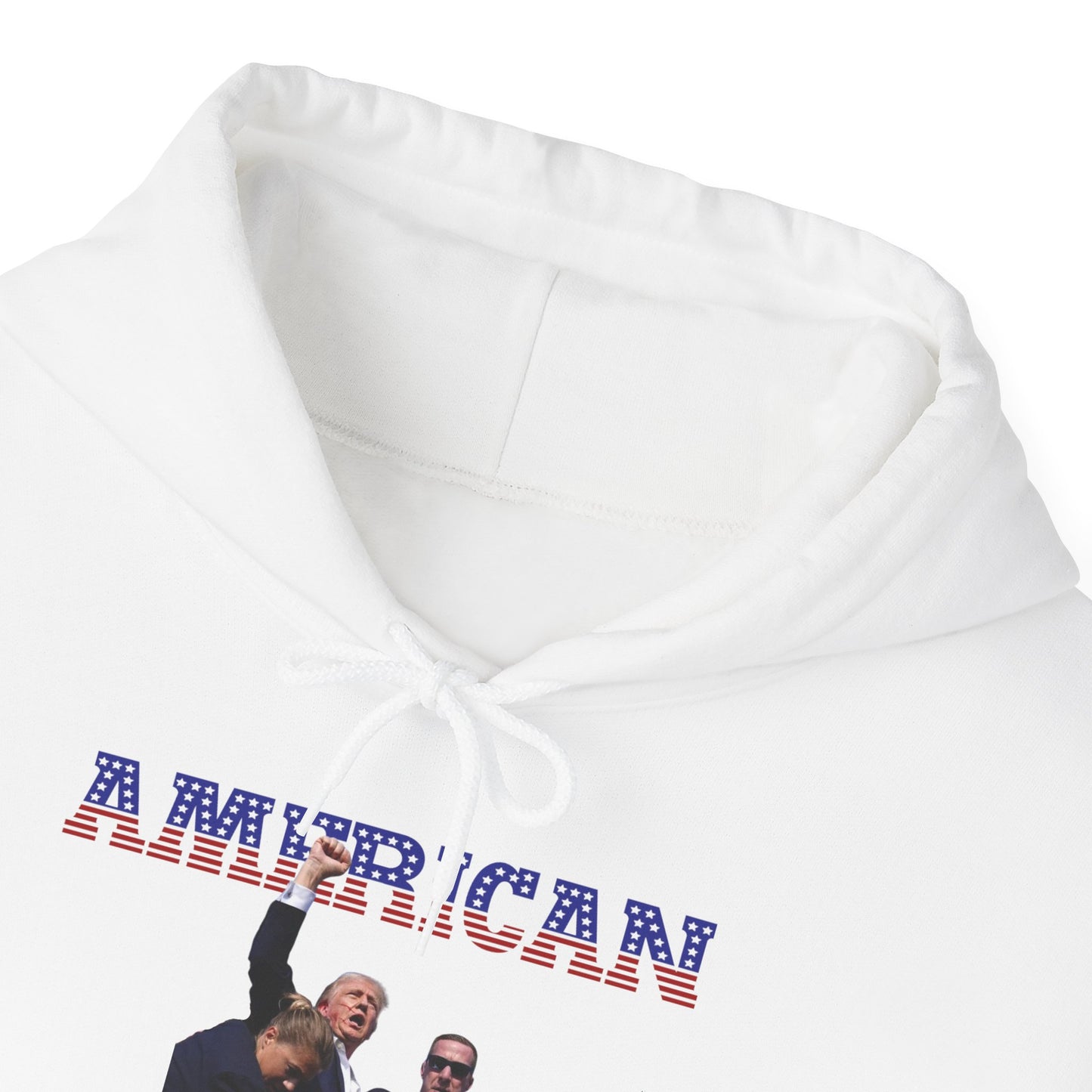 Celebrate President Trump's resilience with the Pro-Trump American Badass Hoodie, exclusively available at J&K Printhouse. Featuring a bold graphic of Trump pumping his fist with the powerful "Fight, Fight, Fight" message, this hoodie is a tribute to his relentless fight to Make America Great Again despite repeated assassination attempts and false charges. Perfect for pro-Trump supporters who stand by their leader through thick and thin.