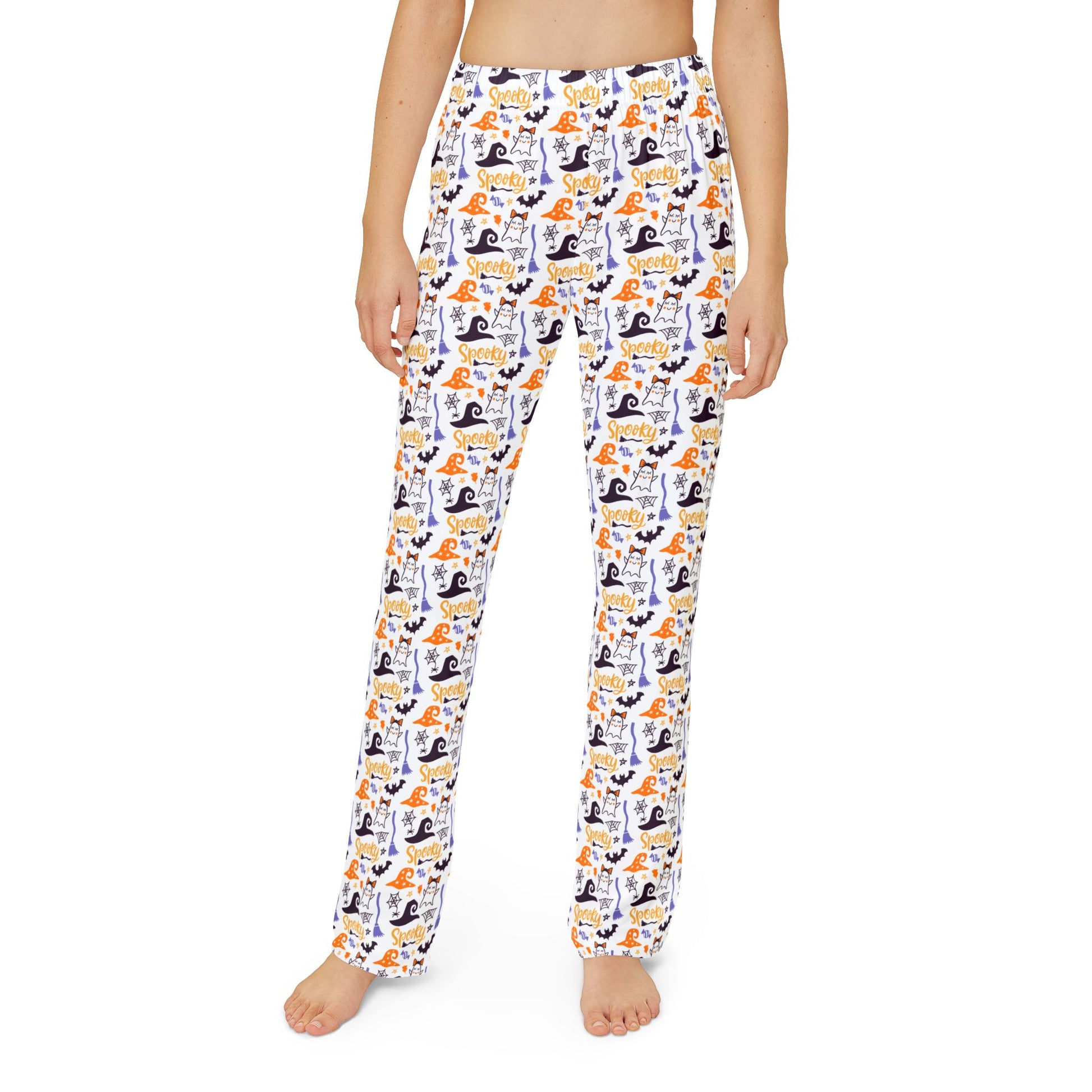 Spooky Halloween Themed Kids Pajama Pants – Cute Ghosts, Witches Hats & Candy