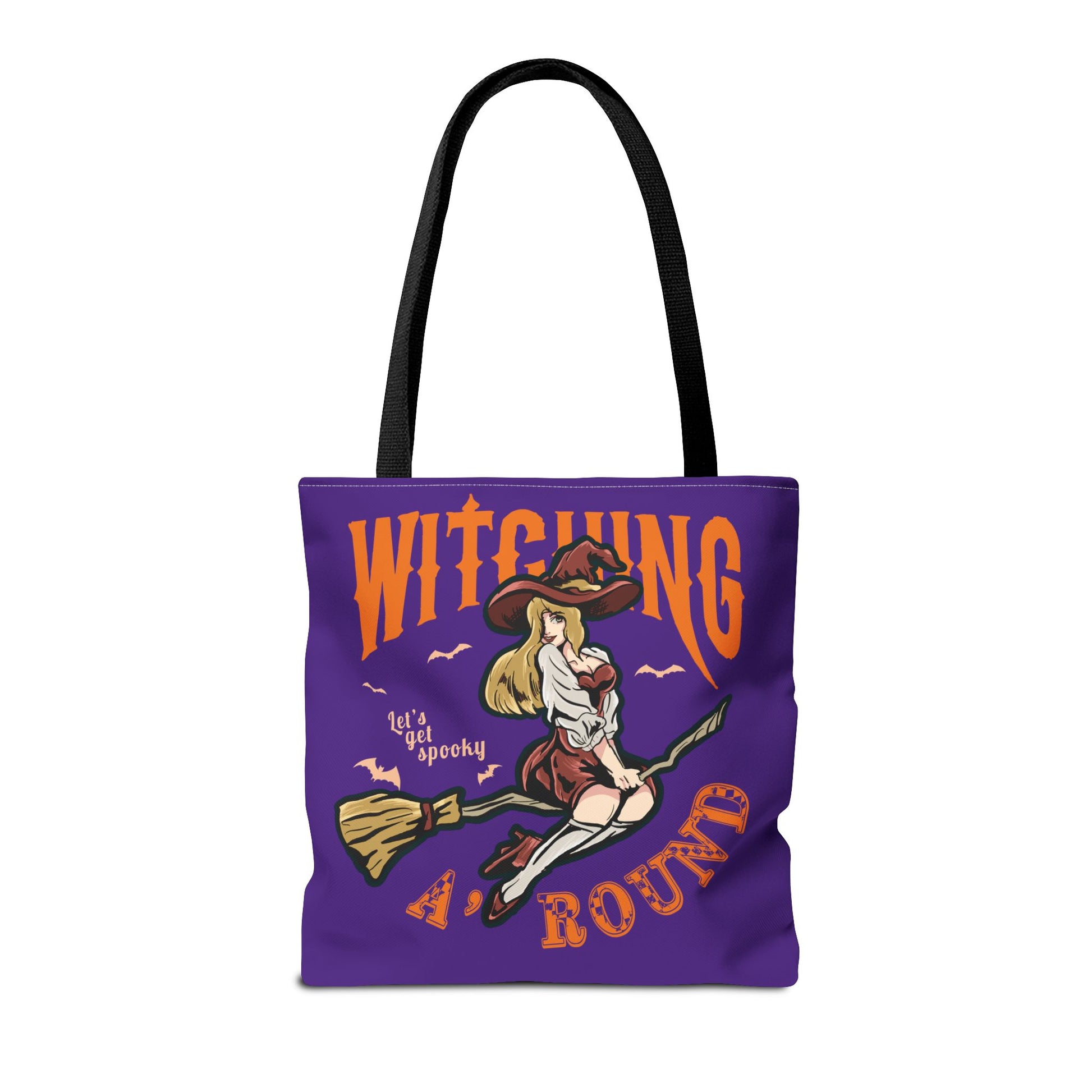 Witching A'Round Halloween Tote Bag | Purple Witch Design Tote