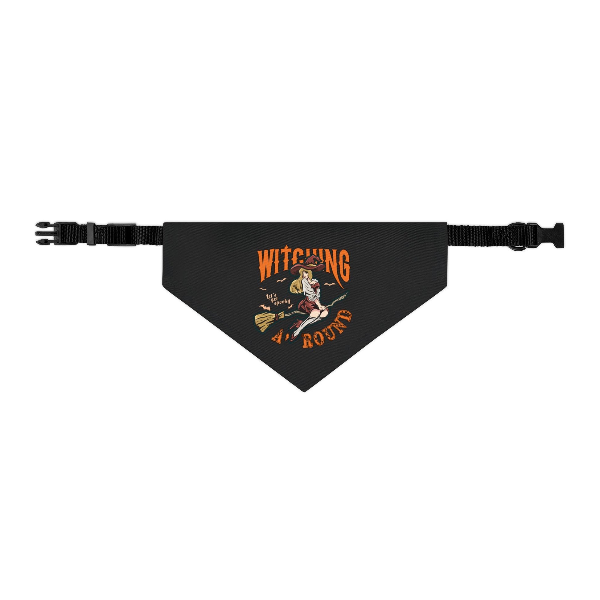 Dress up your furry friend in Halloween spirit with the "Witching A'Round" Black Pet Bandana Collar. Perfect for pets that love to get into the festive fun, this vibrant, single-sided bandana features a witchy design that adds a playful touch to your pet’s Halloween look. Made from durable polyester duck fabric, it is both stylish and practical, offering a comfortable fit with an adjustable black collar and secure plastic buckle.