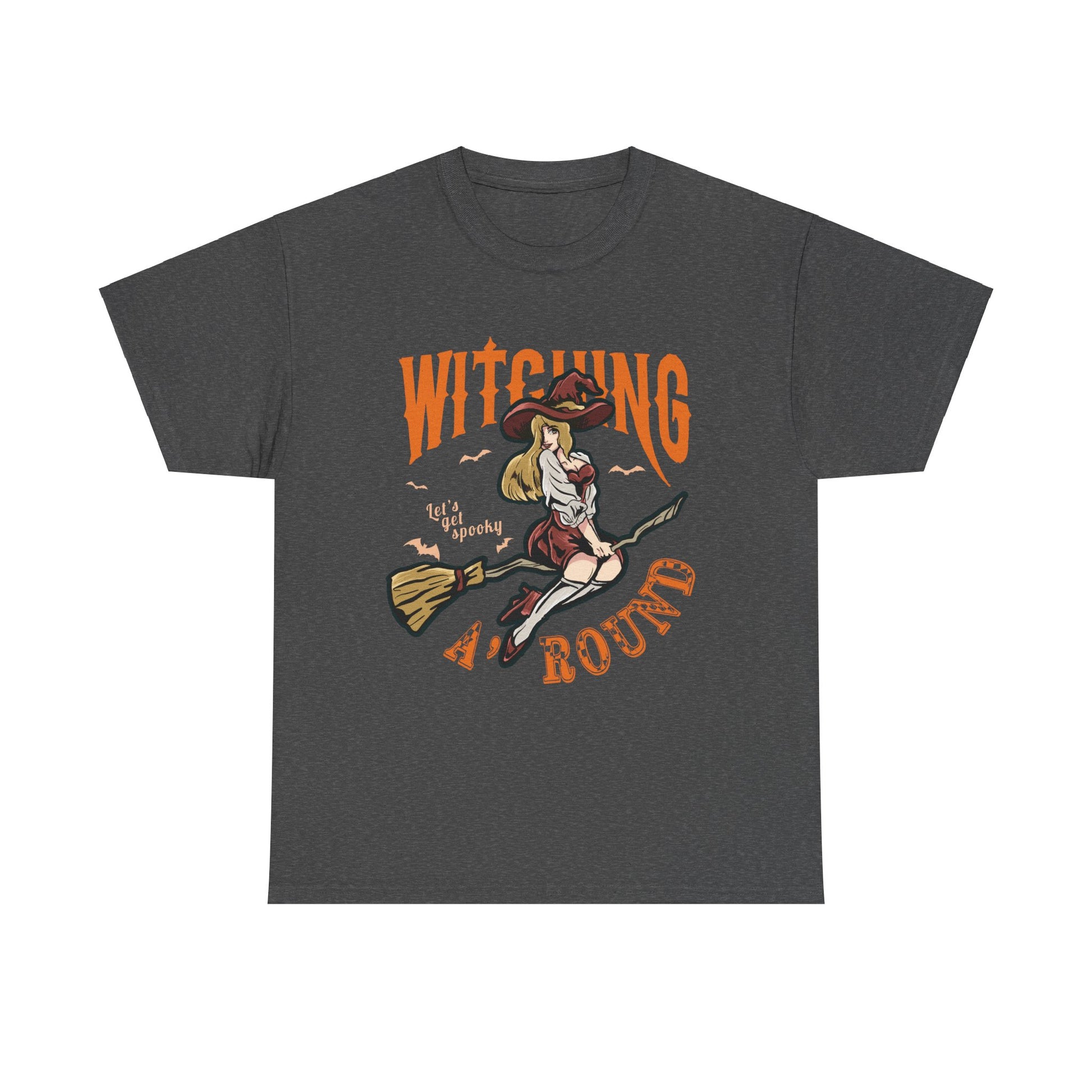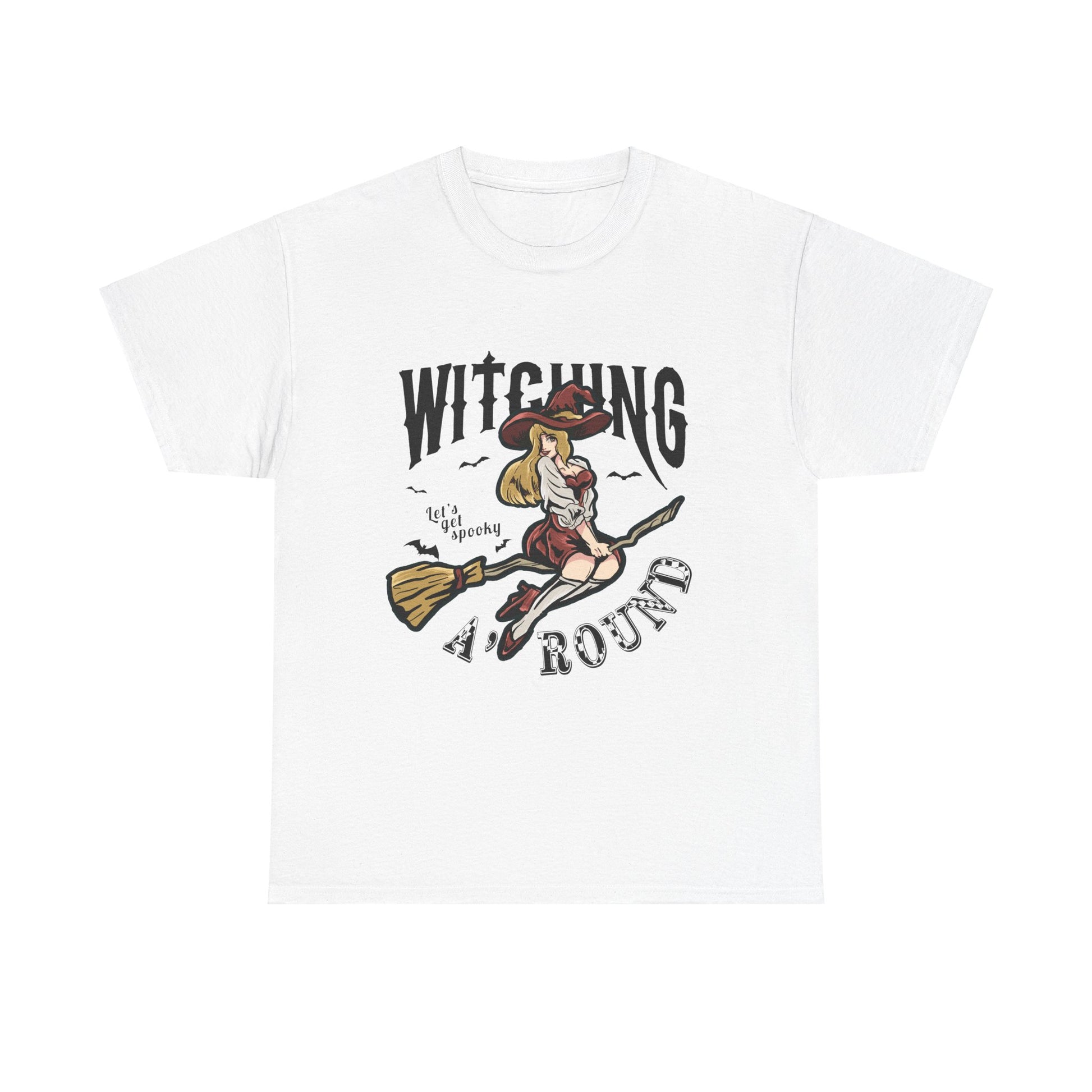 Celebrate Halloween in style with our "Witching Around" Gildan T-Shirt, perfect for those who love all things witchy and spooky. Featuring a playful witch graphic and the phrase "Witching Around," this unisex tee is a fun and easy way to show off your Halloween spirit. Made from 100% ethically sourced US cotton, this shirt offers a classic fit, making it ideal for casual wear, Halloween parties, or as a simple costume alternative.